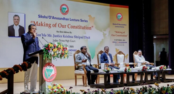ନ୍ୟାୟମୂର୍ତୀ ଦୀକ୍ଷିତ ବିଶ୍ୱବିଦ୍ୟାଳୟରେ ସୋଆ ବକ୍ତୃତାମାଳା ପ୍ରାୟୋଜିତ ‘ମେକିଂ ଅଫ୍ ଆୱାର କନ୍ଷ୍ଟିଚ୍ୟୁସନ୍’ ଶୀର୍ଷକ ବକ୍ତୃତା ପ୍ରଦାନ ଅବସରରେ ଏହା କହିଥିଲେ।
