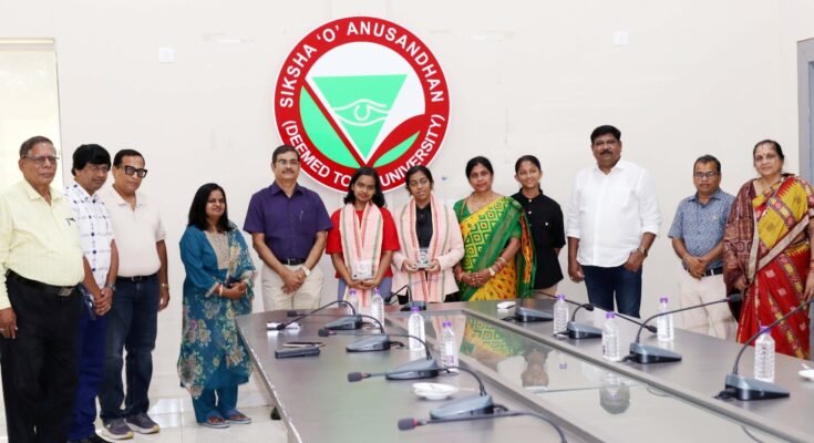 ଭୁବନେଶ୍ୱର, ଏପ୍ରିଲ ୧୭: ସିବିଏସ୍ଇ ଦଶମ ପରୀକ୍ଷାରେ ଶତ ପ୍ରତିଶତ ମାର୍କ ରଖି ଓଡ଼ିଶା ପାଇଁ ସୁନାମ ଅର୍ଜନ କରିଥିବା ୨ଜଣ କୃତୀ ଛାତ୍ରୀଙ୍କୁ ଶିକ୍ଷା ଓ ଅନୁସନ୍ଧାନ (ସୋଆ) ବିଶ୍ୱବିଦ୍ୟାଳୟ ପକ୍ଷରୁ ଗୁରୁବାର ସମ୍ବର୍ଦ୍ଧିତ କରାଯାଇଛି । ସୋଆ କୁଳପତି ପ୍ରଫେସର ପ୍ରଦୀପ୍ତ କୁମାର ନନ୍ଦ ଶୀର୍ଷ ସ୍ଥାନ ଅଧିକାର କରିଥିବା ଉଭୟ ଛାତ୍ରୀ- ପୁରୀ ମଦର୍ସ ପବ୍ଲିକ ସ୍କୁଲର ଟିନା ରଥ ଓ ଭୁବନେଶ୍ୱର କେନ୍ଦ୍ରୀୟ ବିଦ୍ୟାଳୟ-୧ର ଆଲିଶା ବିଶ୍ୱାଳଙ୍କୁ ଶୁଭେଚ୍ଛା ଜଣାଇବା ସହ ସମ୍ବର୍ଦ୍ଧିତ କରିଥିଲେ ।